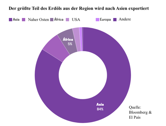 China ist der größte und praktisch alleinige Abnehmer iranischen Öls. Sollte ein Teil seiner Produktion den Markt verlassen, müsste das zweitbevölkerungsreichste Land der Welt dieses Rohöl (und seine Derivate) aus anderen Golfstaaten beziehen – vorausgesetzt, die Straße von Hormus bleibt offen – oder sogar aus anderen Breitengraden.