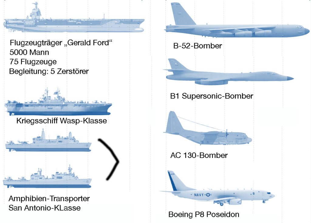 Ein Teil der in der Karibik aufmarschierten US-Flotte und Luftwaffe