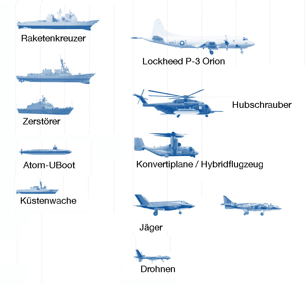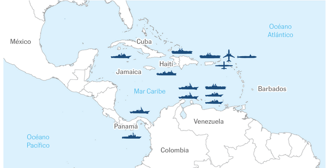 Weitere Geräte, die in der Karibik aufmarschieren. El País gibt leider nicht an, wieviele von diesen Flugzeugen, Schiffen und Drohnen vor Ort sind