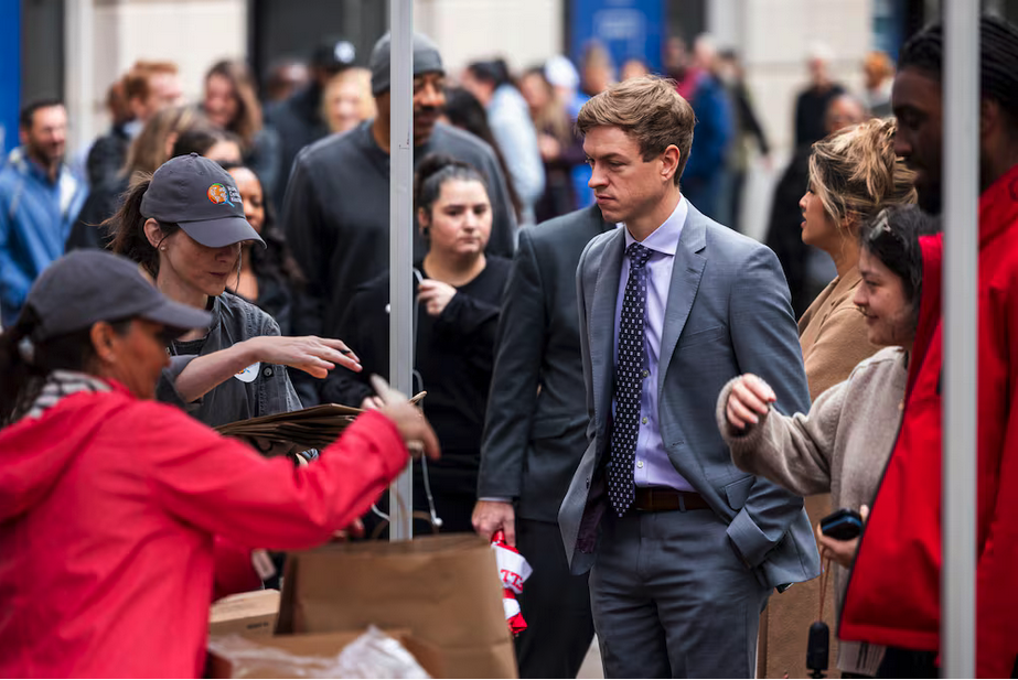 Freiwillige von der Organisation des Starkochs José Andrés „World Central Kitchen“ bei der Essensausgabe in Washington an Beamte, die seit einem Monat kein Gehalt bekommen haben.